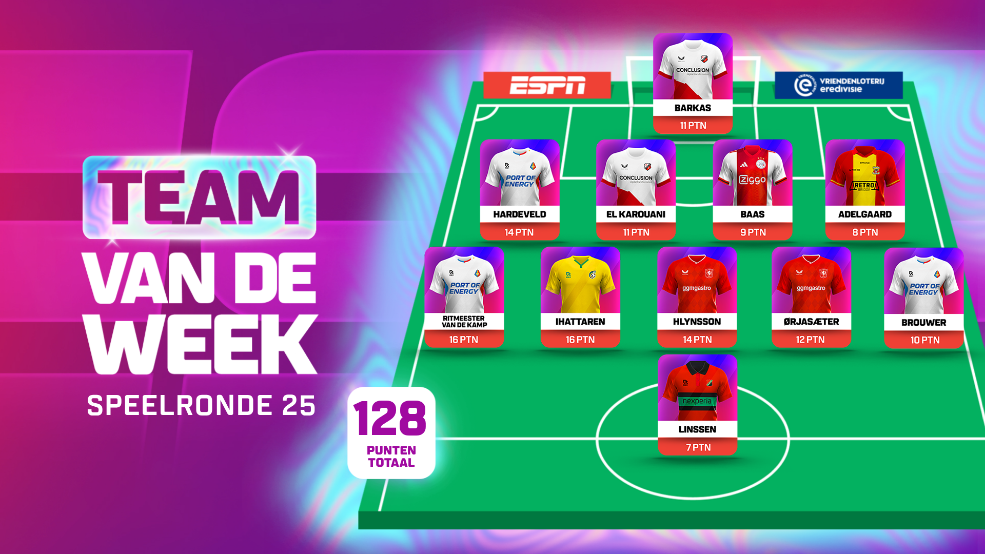 Bij de 1-1 legde hij een vrije trap panklaar voor de meegekomen Iván Márquez. De voorsprong pakte Fortuna na rust dankzij een fraai krulschot van Ihattaren in de verre hoek. En de 1-3 zou Ihattaren zelf via een hoekschop erin hebben gekruld, ware het niet dat ploegmaat Justin Hubner de bal nog verlengde. Drie ronduit perfecte trappen, die Ihattaren liefst 16 Fantasy-punten opleverden.
