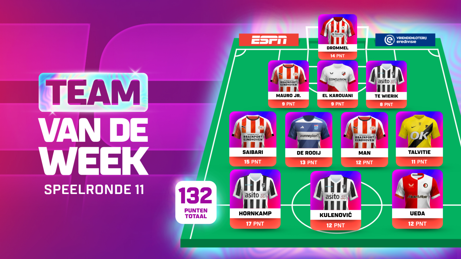 In speelronde 11 van de VriendenLoterij Eredivisie was er voor elk wat wils. De koploper die op een monsterscore lijkt af te stevenen, en alsnog moet bibberen in de slotfase. Wéér een kanonskogel van Ismael Saibari. Een Sparta-keeper die 69 minuten lang op een mix tussen Lev Yashin, Iker Casillas en Spider-Man lijkt. Maar vooral: de hekkensluiter die er acht – ja, ACHT – injaagt tegen een directe concurrent.